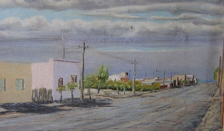 Sus continuos viajes visitando establecimientos ganaderos en la zona costera, cordillerana y en la meseta, lo familiarizaron con la naturaleza y así es como en sus pinturas de los años 50 predominan los paisajes patagónicos, el campo con cielos apacibles y con tormentas de viento, el pueblo de Madryn antes del asfalto, las playas, el puerto, el legendario “Kaiser” , barco naufragado del cual hoy no quedan rastros.