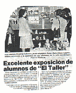 Por ARPACO también pasó Miguel Angel Guereña, que venía de ves en cuando a dar unas clases y movilizar el ambiente madrynense. Un día también llegó un señor que hablaba muy rápido, me contó que era de Trelew y quería conectarse con nosotros porque los que trabajábamos en arte en la zona éramos pocos y teníamos que estar juntos y conocernos; así conocimos a Eduardo Gonzales Táboas, que era fotógrafo...