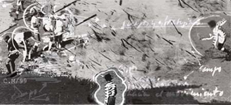 Siempre le interesó la fotografía y con ella la posibilidad de incorporarla como nuevo elemento de la composición y de la imagen. En este momento esta trabajando a través de la imagen digital con la doble alternativa de saltar del papel a lo virtual, yendo y viniendo, combinando recortando y pegando.