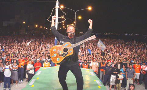 El consagrado León Gieco, juntó más de 25 mil personas en la rambla en una noche inmejorable. Con una completa selección de temas emblemáticos y buena apoyatura de videos, hizo un amplio repaso de sus “causas”, las cosas que las nuevas generaciones no deben perder de vista. Un show imponente.