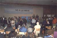 El día sábado 7 fue el más interesante, ya que incluyó el trabajo en comisiones y la posibilidad de perfilar las conclusiones del Foro. El panel sobre “Medios de comunicación” despertó una atracción especial ya que ese era el día del periodista y, como se sabe, los medios tuvieron un rol preponderante a lo largo del conflicto, actuando tanto del lado de los Vecinos Autoconvocados como del sector del poder. Las paredes del salón de la Escuela donde tuvo lugar esta última jornada, estaban empapeladas por prolijos afiches con decenas de recortes de prensa referidos al conflicto desde sus inicios, así como cuadros explicativos, adhesiones recibidas por los vecinos de todas partes del mundo, folletos, carteles, y fotografías de las multitudinarias marchas que protagonizaron por las calles de Esquel.
