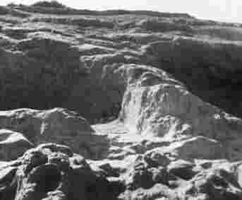 Es evidente que las cuevas de la punta homónima, que la marea sumerge dos veces por día, no pudieron ser el refugio que la tradición oral sostiene. En cambio, muy cerca de allí, sobre la cara oeste de la Punta Cuevas, existen unas excavaciones artificiales, ubicadas en hilera por encima del nivel de la pleamar, que podrían considerarse como lugar transitorio o primitivo de refugio. Tienen el tamaño de habitaciones pequeñas; hay cinco relativamente bien mantenidas, dos semiderruídas por el mar y vestigios de una octava. El trecho inmediato de la costa, hacia el sur, a lo largo de unos 45 metros, muestra indicios de haber sido trabajado de la misma forma (N. Weiler, com.pers.). Este último sector, por su ubicación ha sufrido mayor erosión marina y sólo puede presumirse la existencia de unos ocho o nueve cubículos más, con lo que en total serían unas quince o dieciséis "habitaciones".